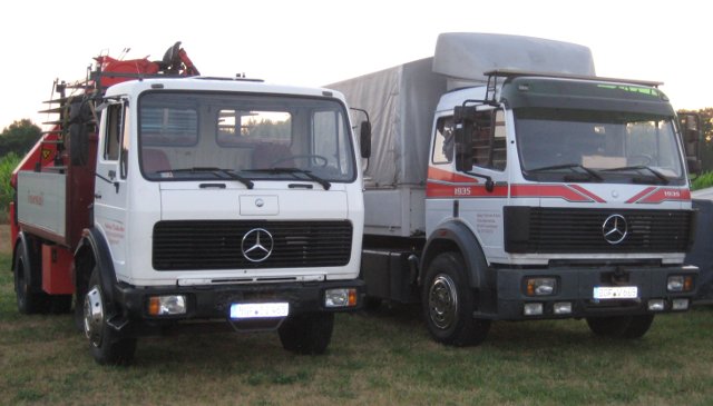Abb.: links ein Mercedes-Benz“NG73” Bj.1978; rechts“SK” (schwere Klasse) nach Bj.1990 (Foto 2010)
